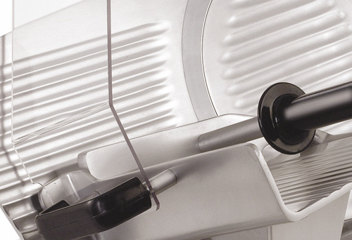 Equipada con una cuchilla de 220 mm de diámetro, esta máquina garantiza un corte preciso y uniforme para una amplia gama de productos. Su potente motor permite un funcionamiento continuo sin pérdida de rendimiento. Para la seguridad del usuario, incluye un protector de cuchilla y un afilador integrado para mantener el filo óptimo. Todas las cortadoras incorporan un anillo protector fijo en el disco para proteger al usuario durante la limpieza y mantenimiento de la cortadora. Él carro esta montado sobre casquillos autolubricados que permiten un fácil deslizamiento, pudiendo cortar fiambres, asados, etc. con suma facilidad.
