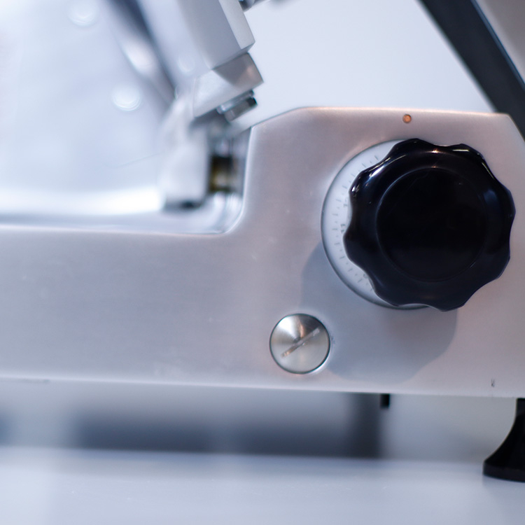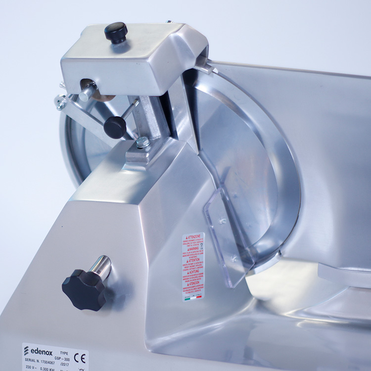 La cortadora de fiambre Edenox CGSP-300 es un equipo profesional de alta gama diseñado para un uso intensivo en establecimientos de hostelería y alimentación. Su robusta construcción en aleación de aluminio anodizado garantiza durabilidad y facilita la limpieza.