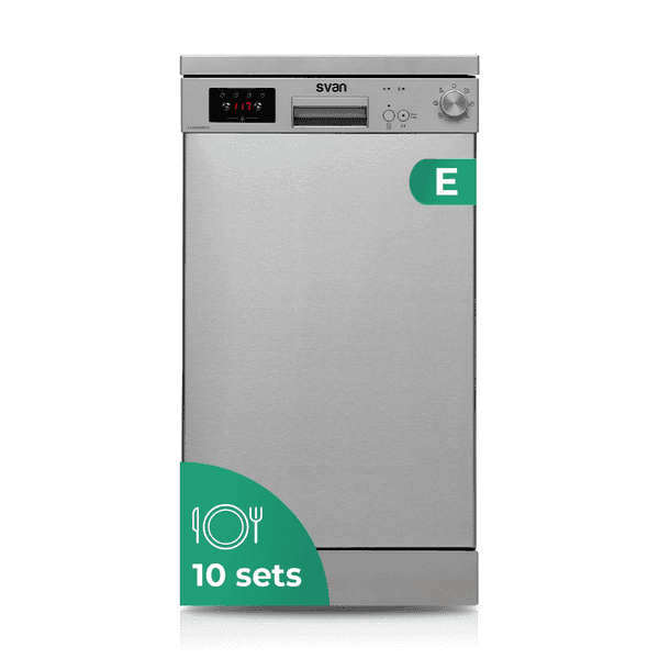 El lavavajillas Svan SJ104501EDX combina la eficiencia y funcionalidad de la gama compacta de Svan con un atractivo acabado en color Inox, que le dará un toque moderno y elegante a su cocina.