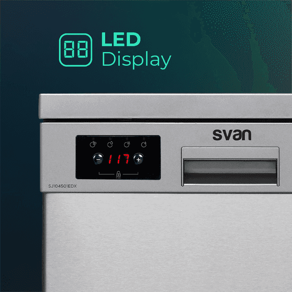 El Svan SJ104501EDX es la combinación perfecta de diseño moderno en Inox, eficiencia en el consumo y resultados de limpieza excepcionales, todo en un formato que se adapta a cualquier cocina.