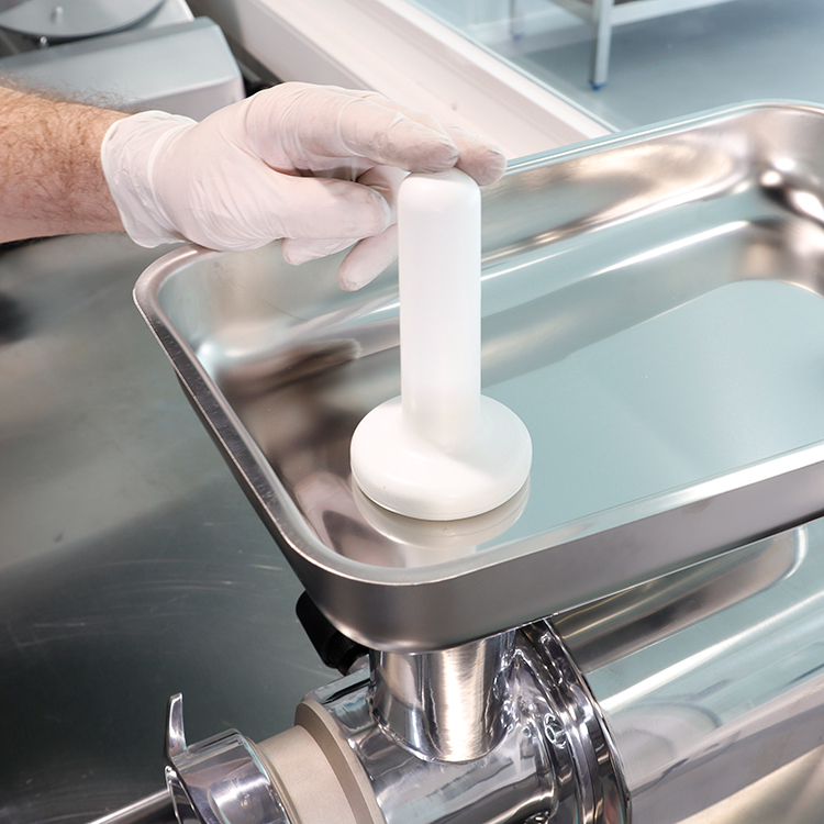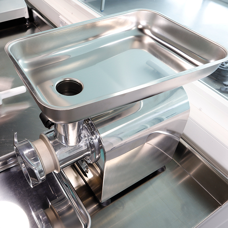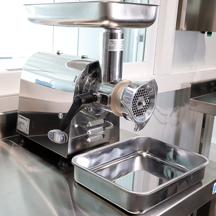 Construida con cuerpo y grupo picador de acero inoxidable de alta calidad, garantiza la máxima higiene y facilidad de limpieza. Sus componentes en contacto con los alimentos son fácilmente desmontables. Incorpora un panel de mando a 24V con telerruptor, ofreciendo seguridad adicional al evitar encendidos accidentales. Este robusto equipo cumple con las directivas de seguridad europeas (CE), asegurando un funcionamiento fiable y seguro en entornos exigentes como carnicerías y plantas de procesamiento de alimentos. Conjunto de boca y grupo de corte fácilmente desmontable. Incorpora grupo de boca y picador totalmente en acero inoxidable.