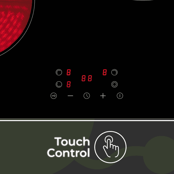 Estética cristal negro y sistema de control táctil con 9 niveles de potencia de cocción y funciones para obtener el mayor rendimiento y seguridad en el proceso de cocción.